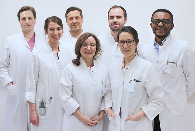 Ein Teil des Teams der Klinik für Urologie (von links nach rechts): Dr. Eimer, Frau Hofrichter, Dr. Bischoff, Frau Dr. Rotsch, Dr. Galal, Frau Dr. Traumann und Herr Dr. Doh